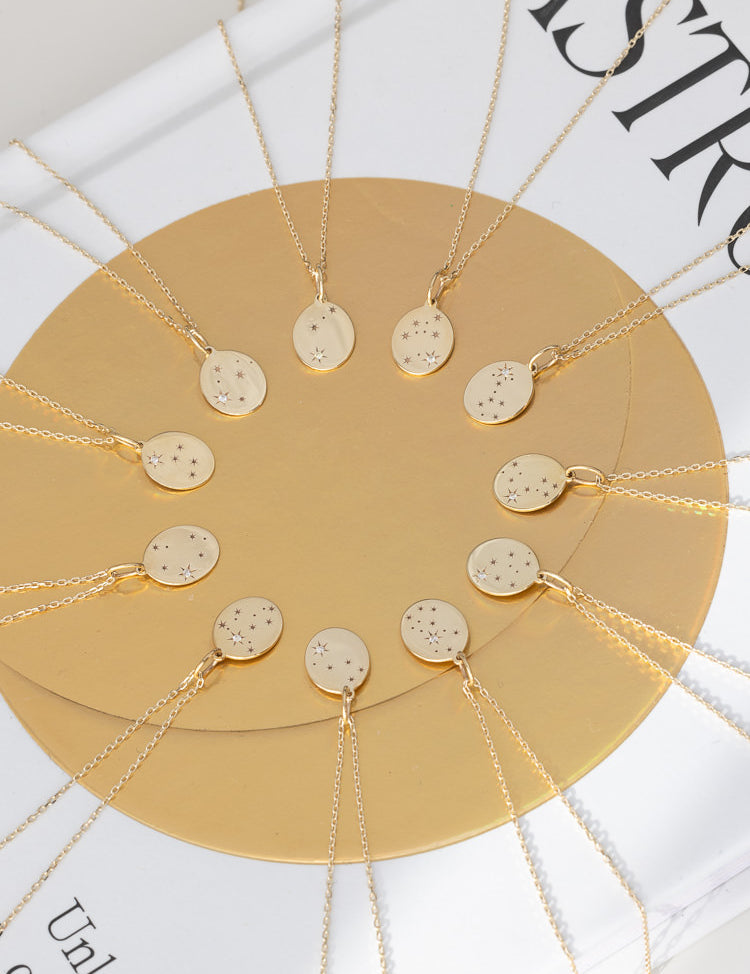 Discover our range of solid gold jewellery, featuring Birthstones, Luna Letters, Constellations, and Elements, all set with natural diamonds and gemstones.