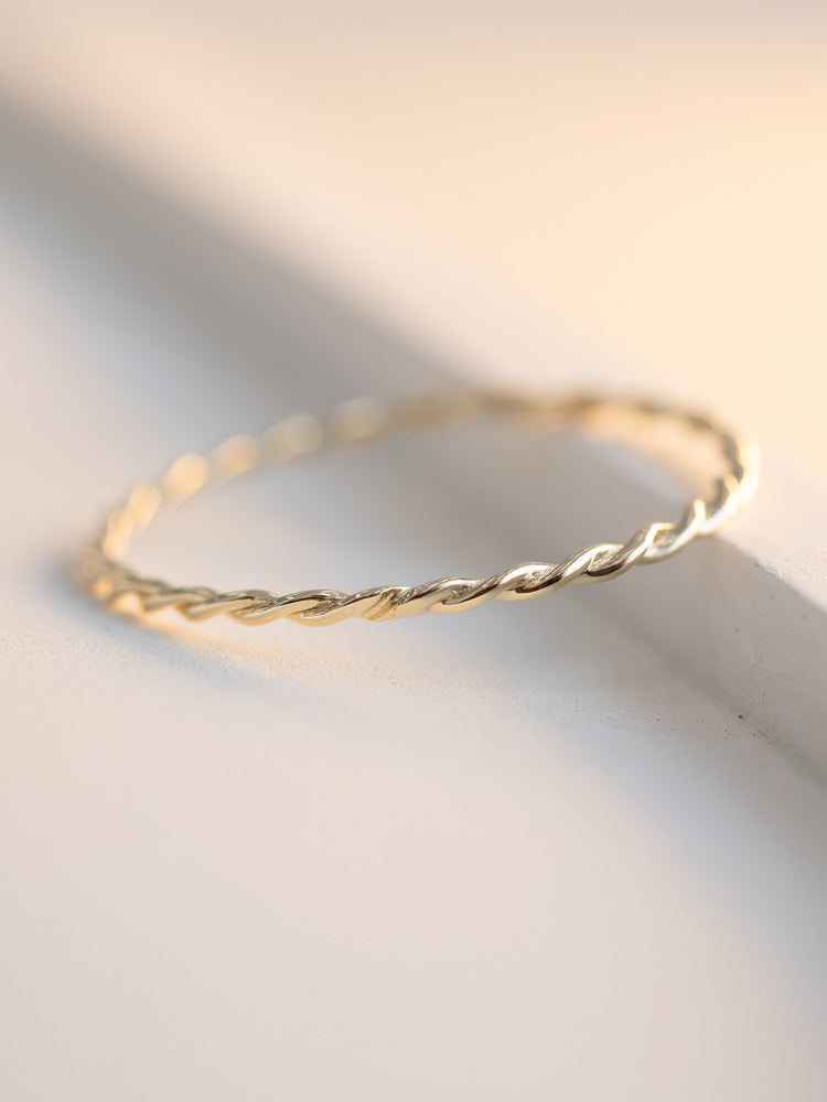 Superfine yet sturdy twisted gold band