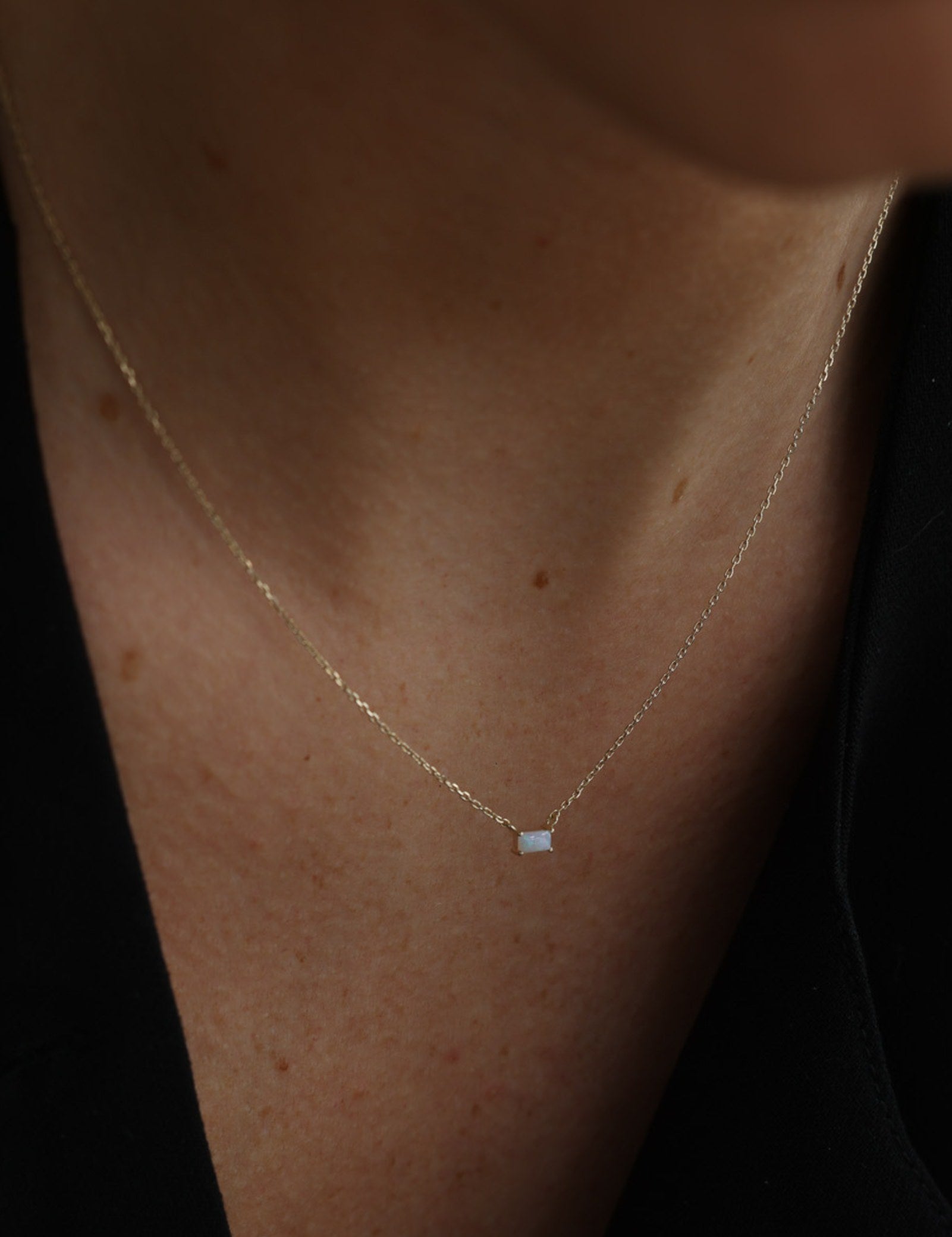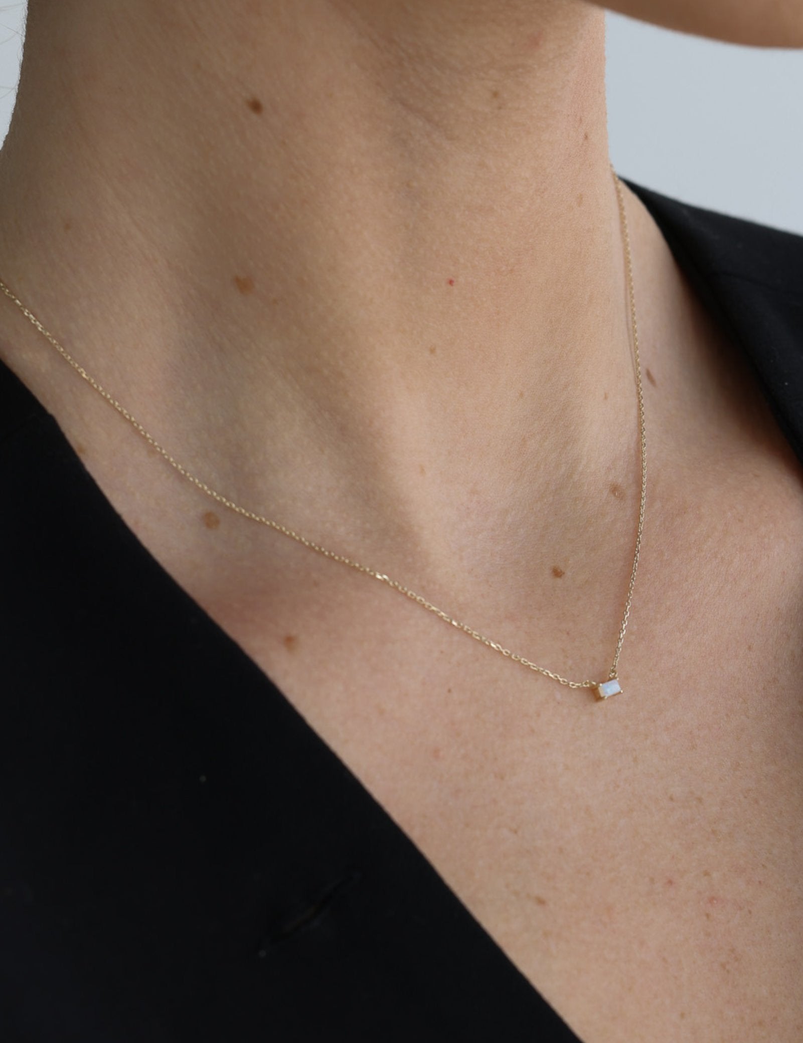 Crafted from exquisite 9K solid gold, this necklace showcases an opal with captivating brilliance.