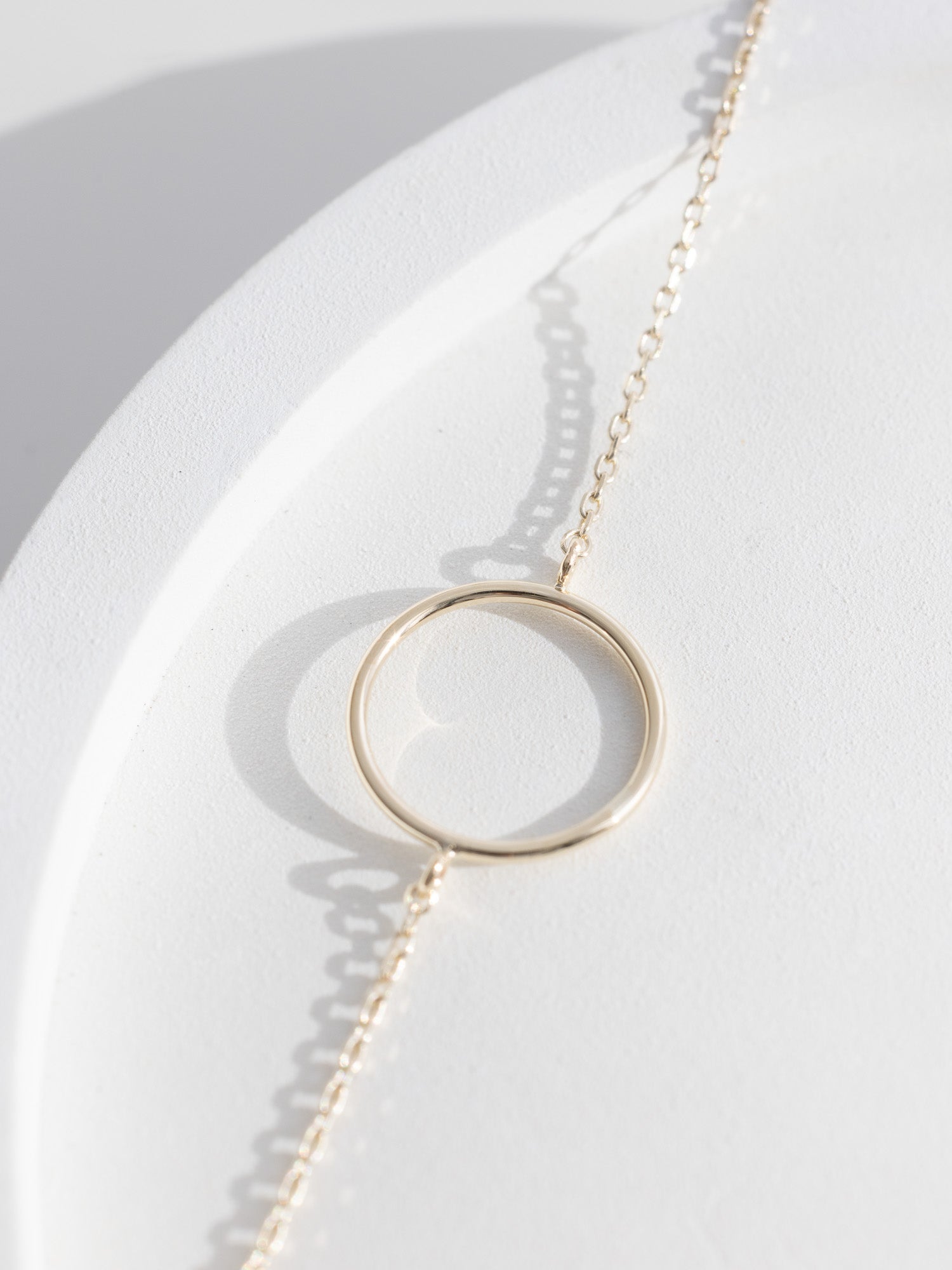 Made from solid 9k gold, it features an open circle on a fine gold chain, embodying the eternal symbol. With a design that is perfect for stacking, the Eternity Bracelet is a versatile and stylish addition to your collection.
