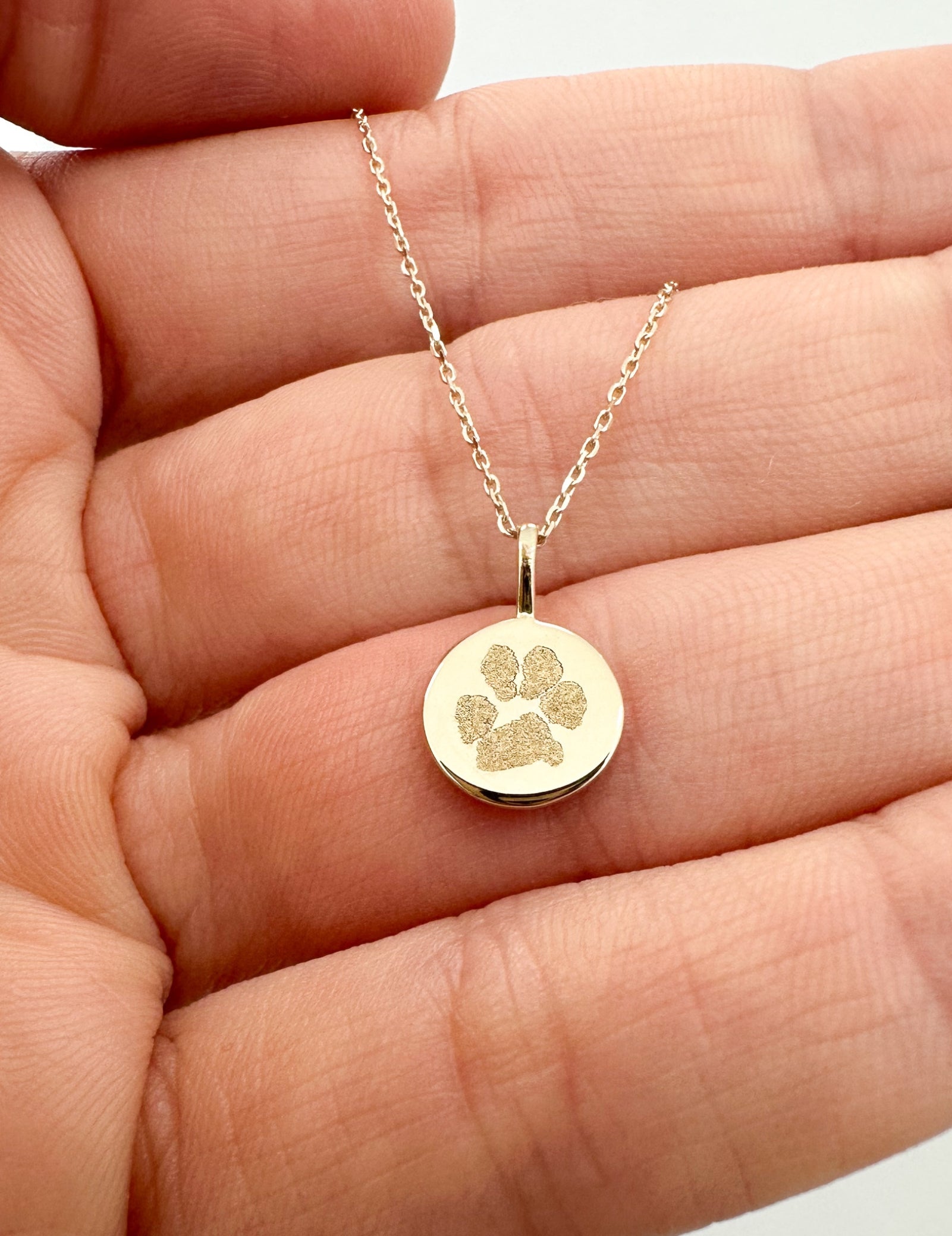Hold onto what matters most with the Flat Disc Pendant. Crafted from solid 9K gold with a sleek, high-polish finish, this timeless piece comes in three sizes, ready to be engraved with a fingerprint, paw print, artwork, or a treasured memory—creating a keepsake that’s uniquely yours.
