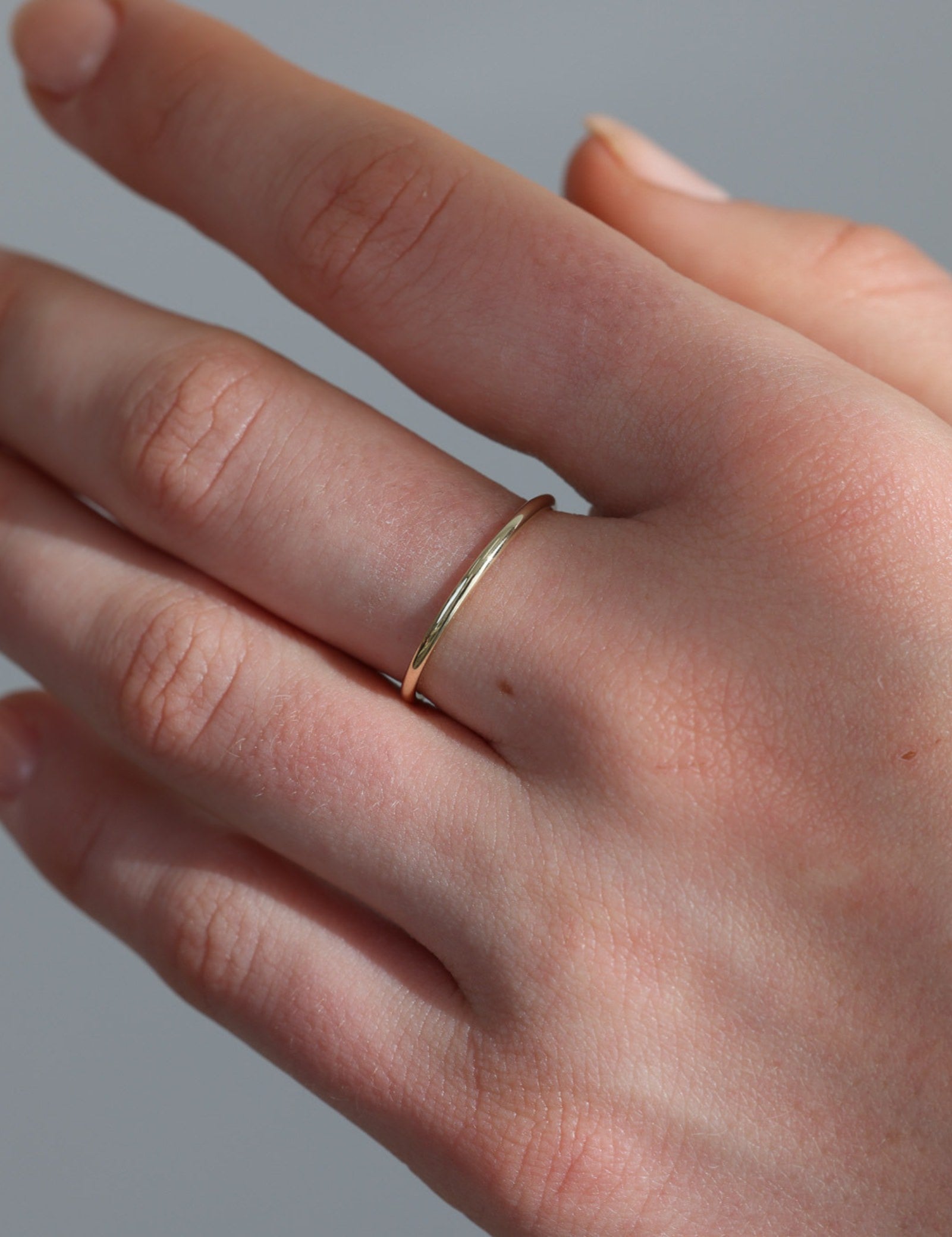 Timeless and elegant, the Mia Ring in fine solid 9K gold offers a minimalist touch to any look. Its sleek, unadorned design makes it perfect for both everyday wear and special occasions.