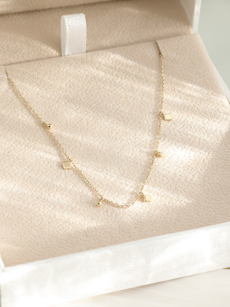 • Star-Inspired Design: Capturing the radiance of the night sky, the necklace features delicate square pendants and a standout white diamond, mirroring the twinkling stars above.
