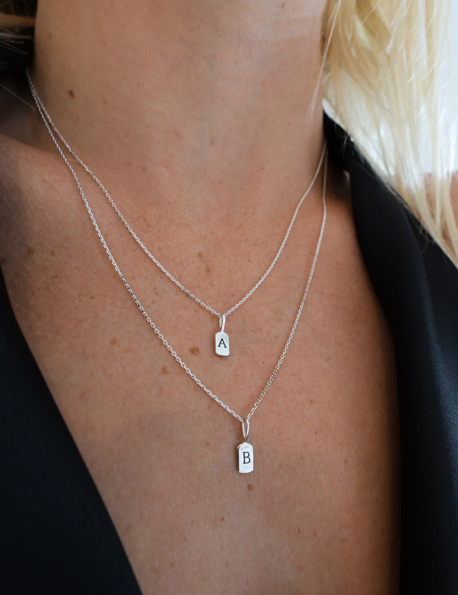The delicate typewriter-style font allows it to hang as a single charm or be layered with other Luna Letters, creating a personalised piece. Available as a standalone charm or with a silver chain of varying lengths, it's a lightweight yet distinctive accessory.
