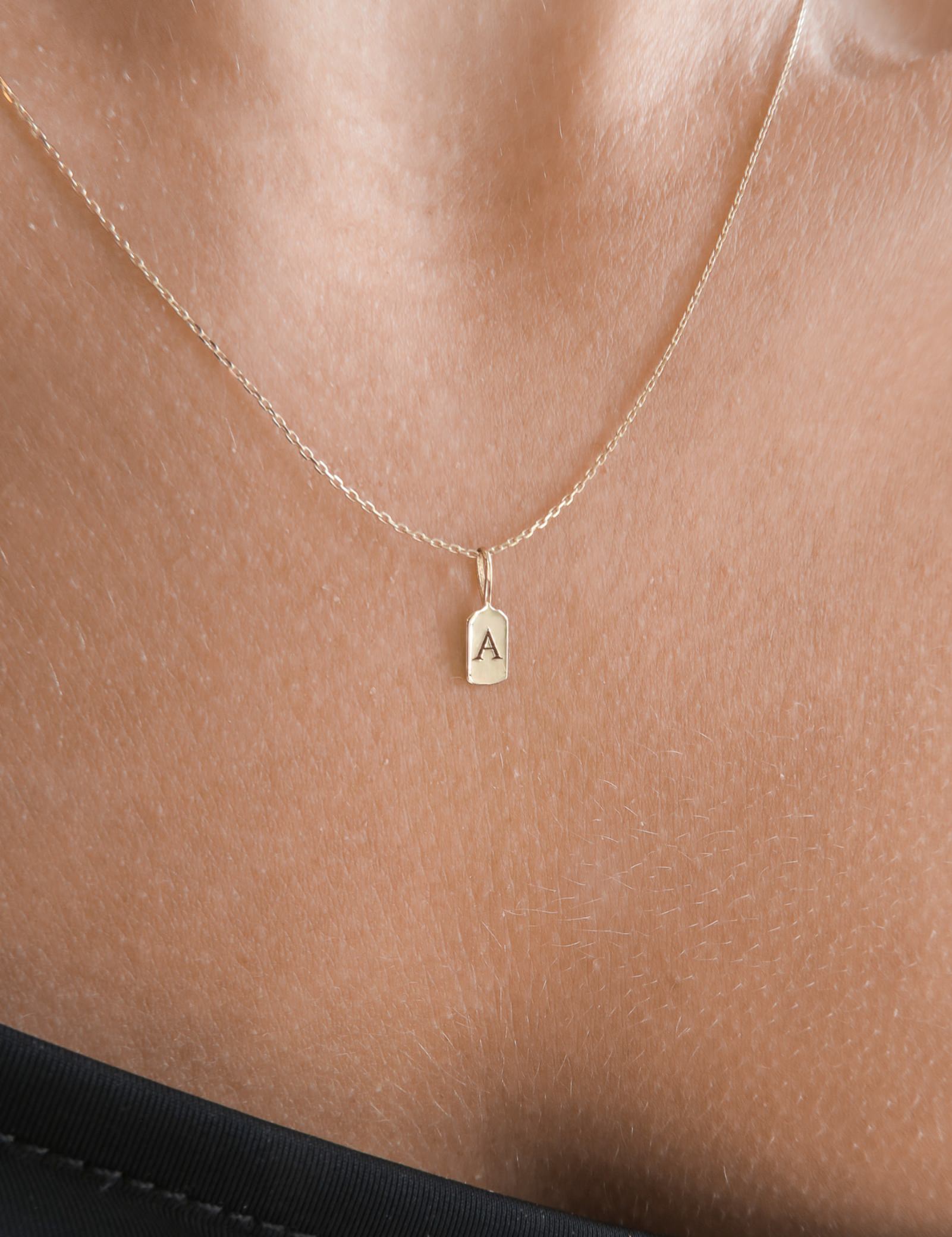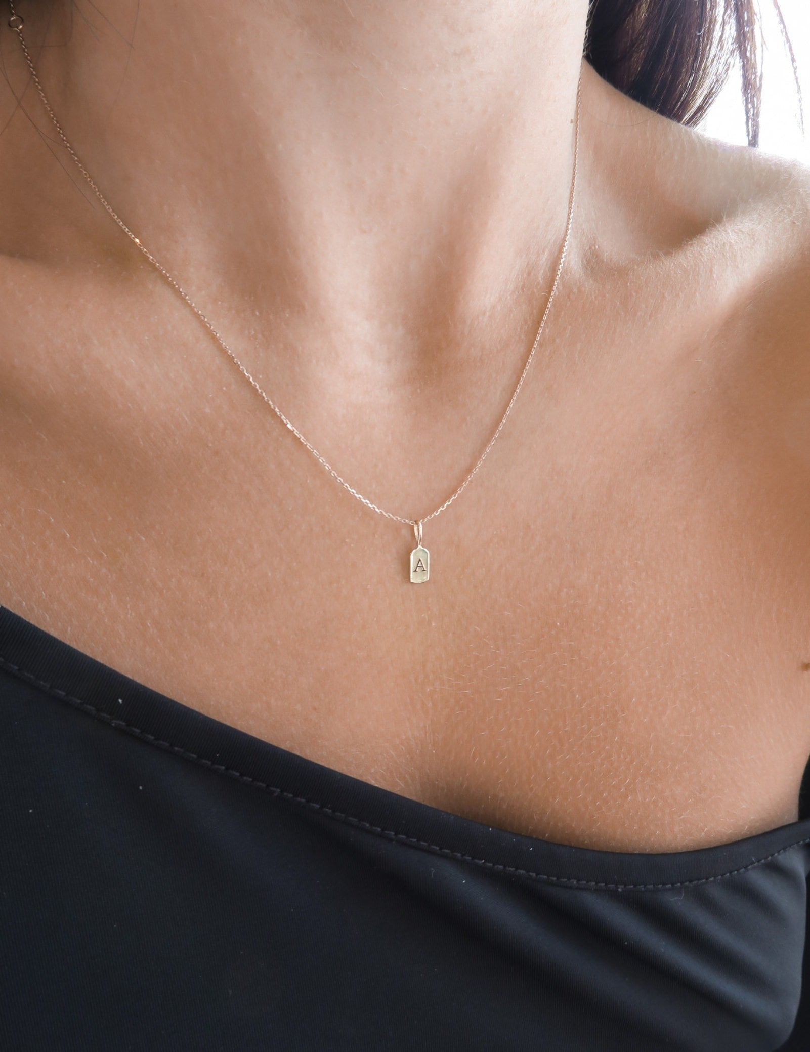 The Luna Letter A charm measures 11mm x 3.6mm, ensuring a subtle yet distinct presence on any outfit.
