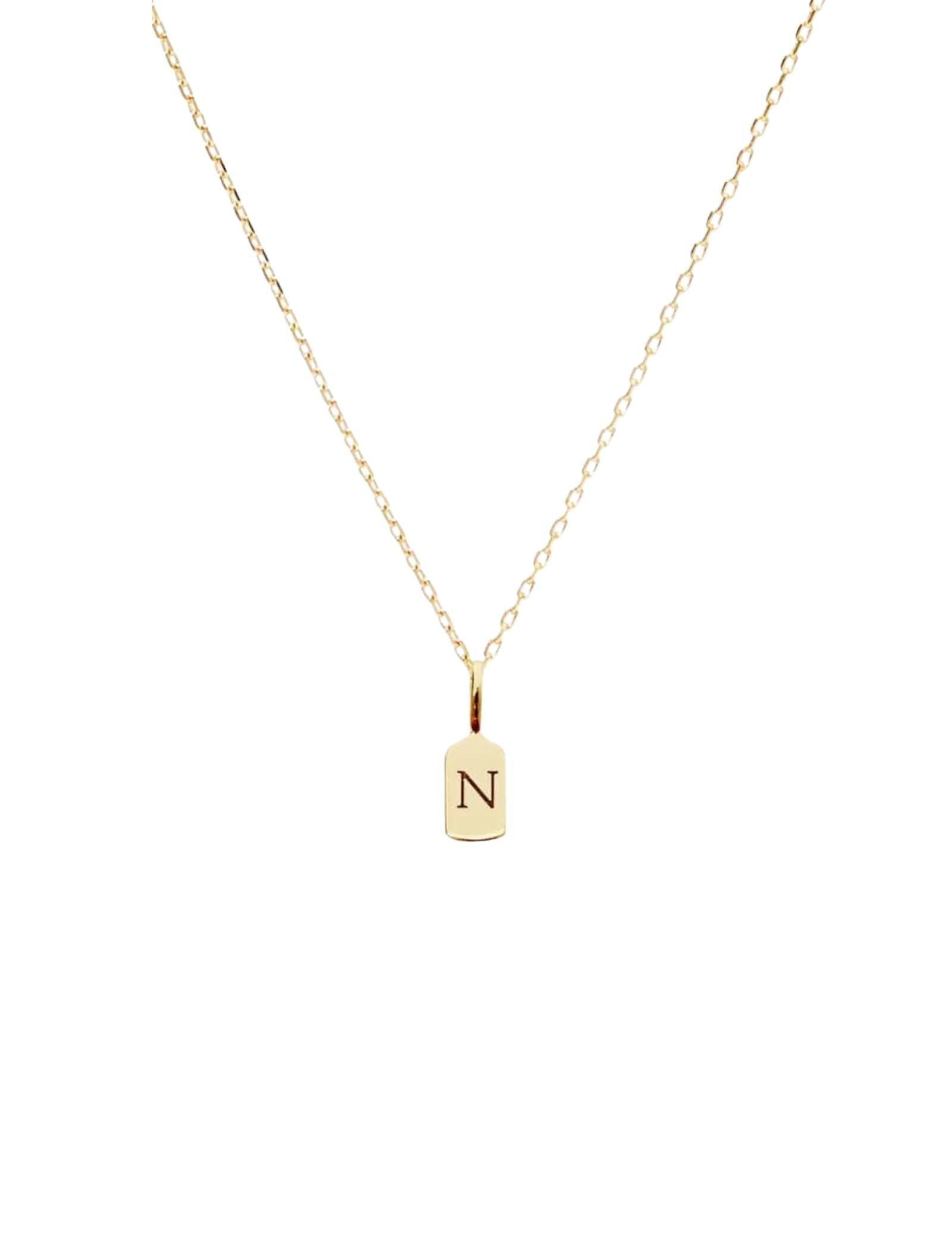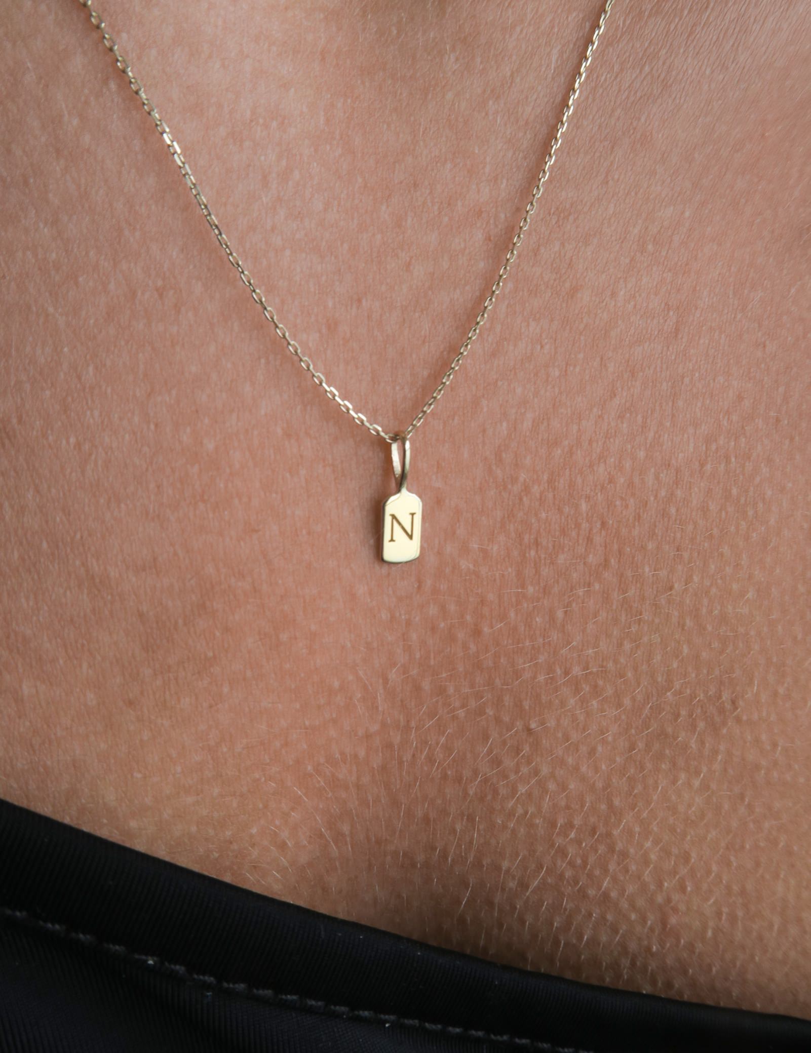 The Luna Letter N charm measures 11mm x 3.6mm, ensuring a subtle yet distinct presence on any outfit.