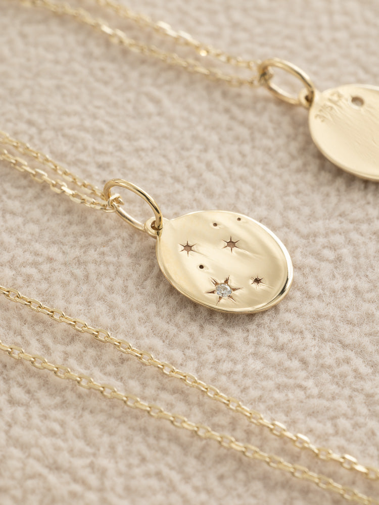 Available as a charm only or paired with either a 50cm or 45cm solid gold chain, this necklace is versatile, meaningful, and personal to your astrological sign.