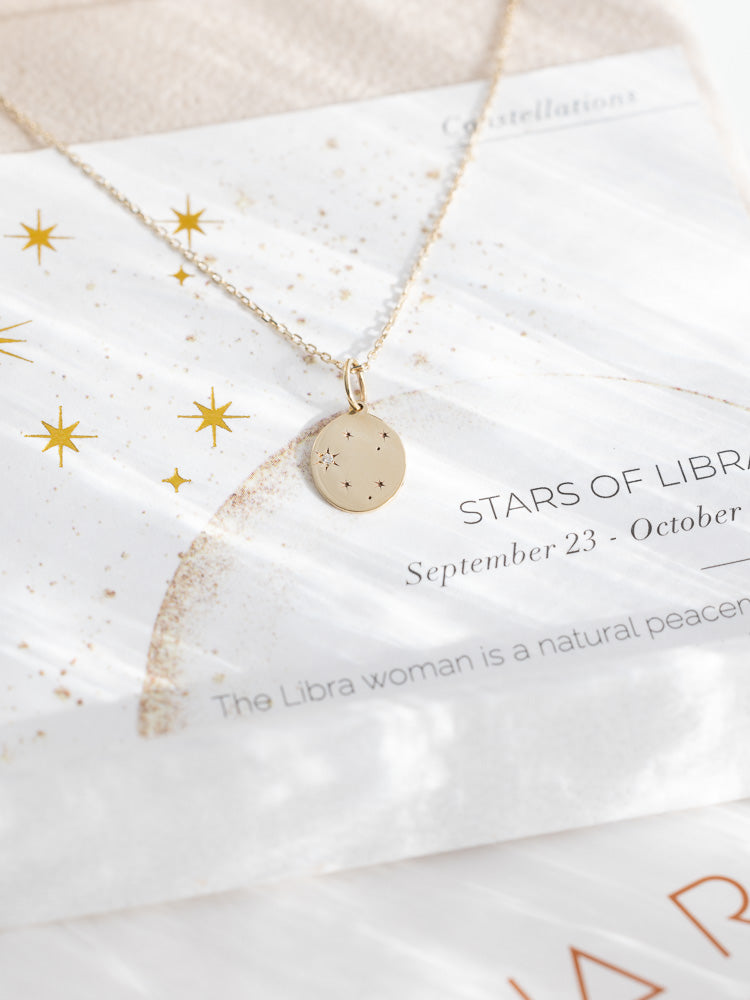 Journey through the cosmos with the Stars of Libra Necklace. Inspired by the Libra constellation, this necklace is a unique reflection of those born under the zodiac sign from September 23 to October 22.
