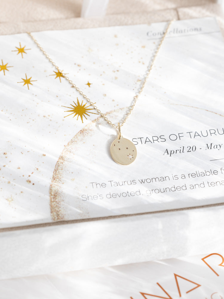 Embark on an astral journey with the Stars of Taurus Necklace. Inspired by the Taurus constellation, this necklace is a unique reflection of those born under the zodiac sign from April 20 to May 20.